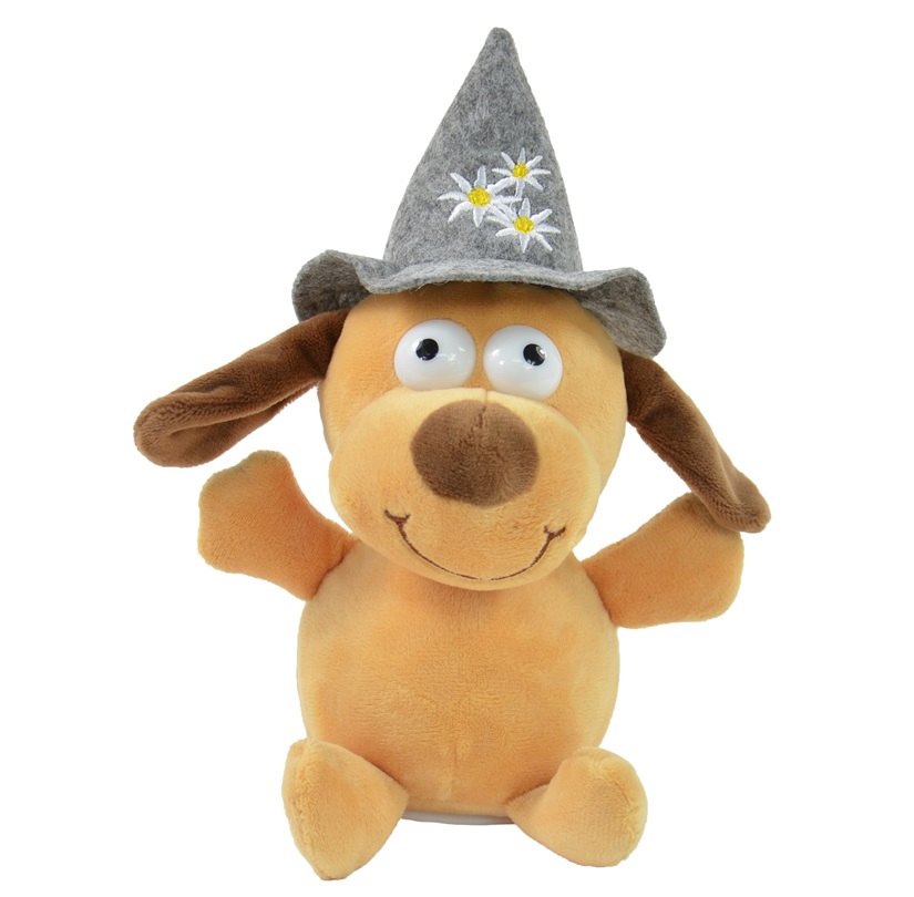 75928 - Laber-Hund "Bruno" mit Hut, inkl. Batterien, 23x16x11,5cm