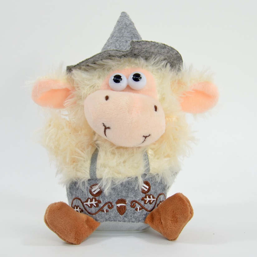 Das wackelnde Laber-Schaf Trudi mit Edelweiß-Filzhut,  welches sein Baby Alfons im Arm hält, nimmt fast alles auf (maximal 6 Sekunden)  und gibt es mit einer witzigen Stimme wieder. Damit bringen sie fast jeden  zum Lachen.
