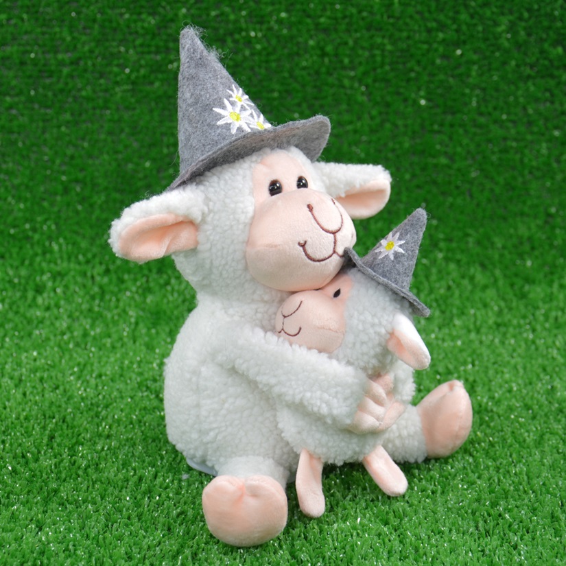 75974 - Laber-Schaf "Trudi" mit Baby "Alfons" und Edelweiss-Filzhut, inkl. Batterien