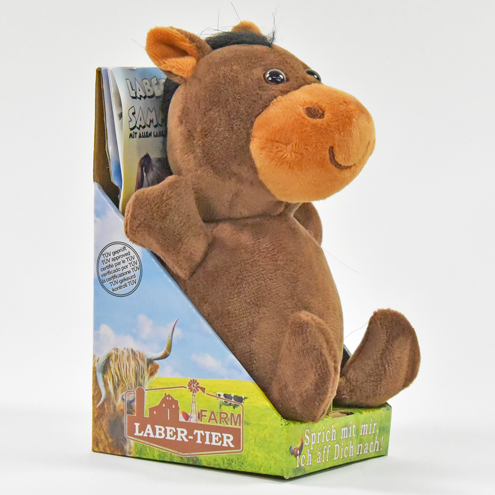 Das Laber-Pferd kann bis zu 6 Sekunden aufnehmen und wiedergeben, was es aufnimmt. Dabei ahmt es die Stimme und Aussprache des aufgenommenen Wortes oder Satzes auf humorvolle Weise nach, was für viele Lacher und Unterhaltung sorgt.