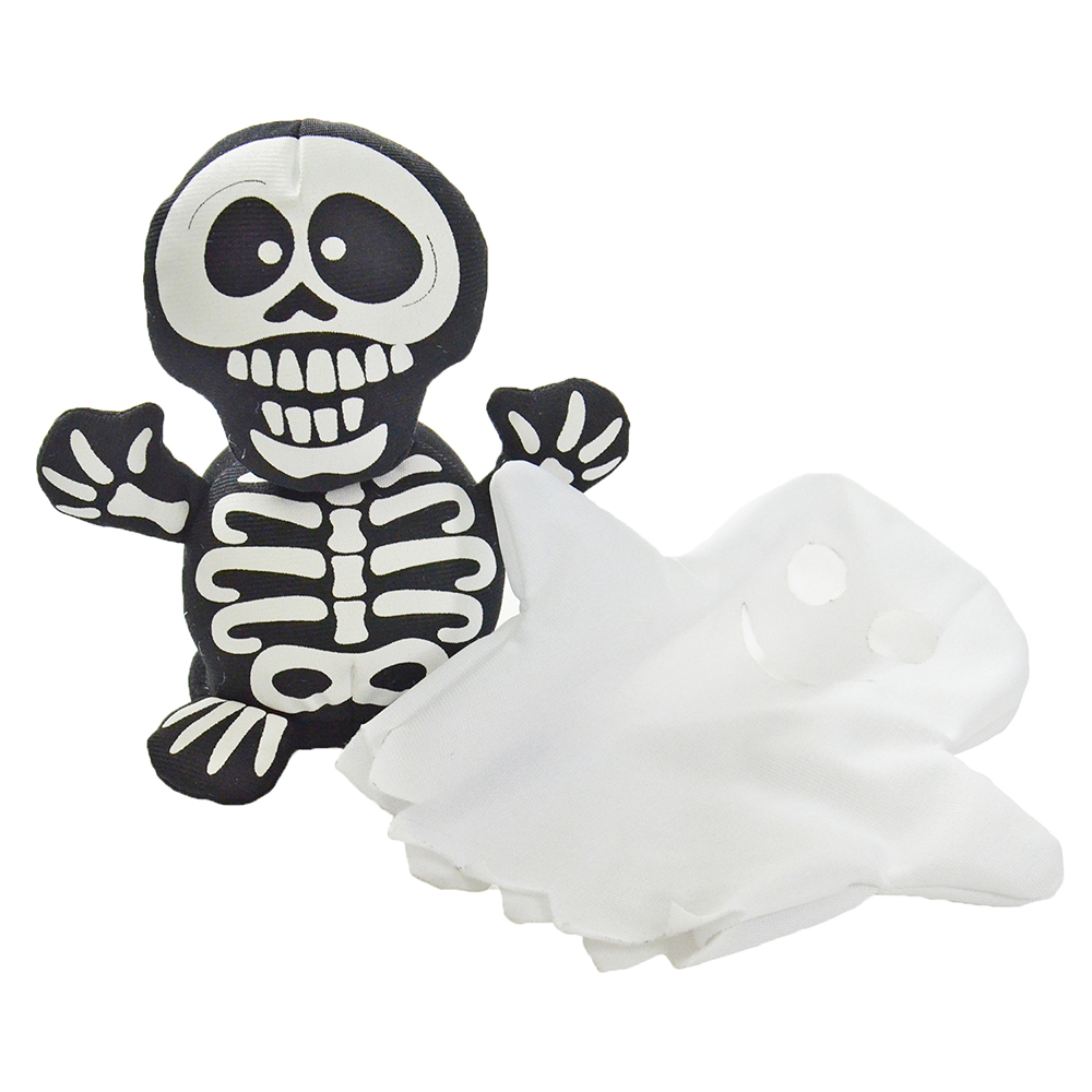 Besonderheit: Laken aufziehen und es ist ein Gespenst. Laken abziehen und die schwarze Figur mit Knochen kommt zum Vorschein.