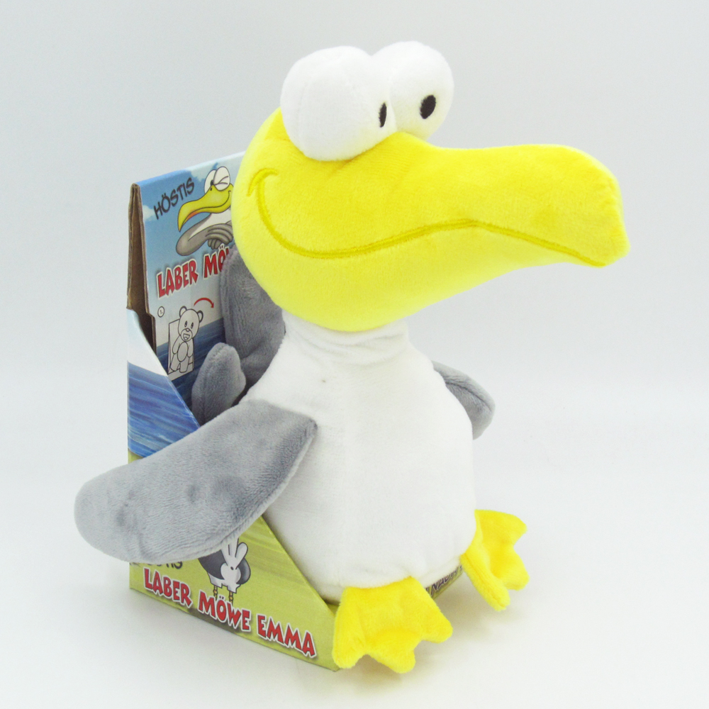 Die Laber-Möwe Emma spricht, wie ihr der Schnabel gewachsen ist. Sprich mit ihr und sie gibt es mit einer lustigen Stimme wieder und wackelt dabei lustig mit dem Kopf. Damit bringt sie fast jeden zum Lachen!