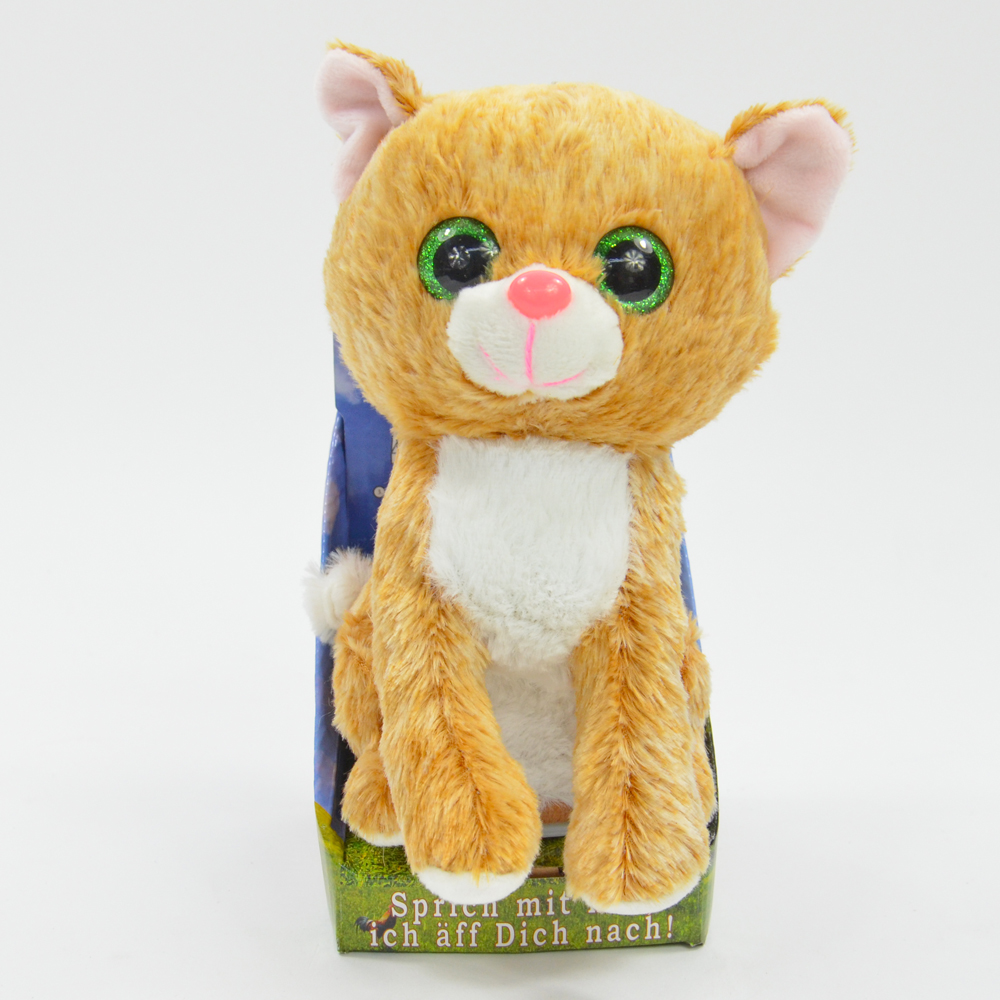 Funktion: Spricht alles mit einer witzigen Stimme nach und bewegt dabei den Kopf. Größe: ca. 12x18x19cm Material: 100% Polyester Batterien: 3x AAA 1,5V Batterien (inklusive)