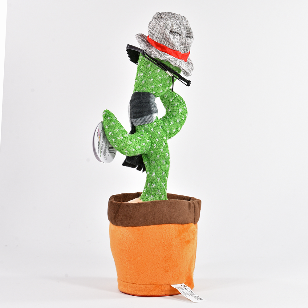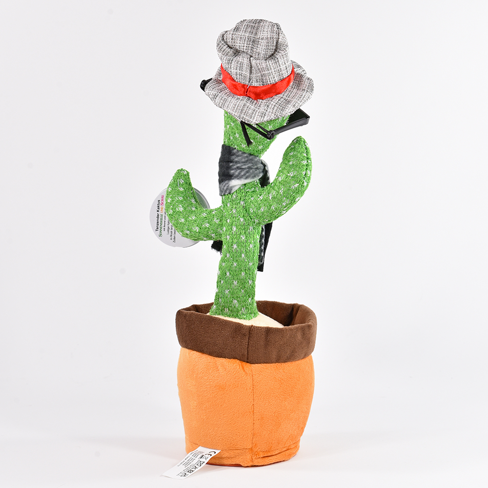 Dieser Kaktus ist ein echter Hingucker! Er tanzt fröhlich in seinem Topf zu verschiedenen Melodien und kann sogar Ihre Stimme aufnehmen und wiedergeben. Mit seiner coolen Sonnenbrille und seinem bunten Schal ist er ein lustiger Begleiter für Groß und Klein. Der Kaktus ist aus weichem Polyester gefertigt und hat eine Größe von 11 x 11 x 35 cm. Bestellen Sie jetzt diesen tanzenden Kaktus und bringen Sie Spaß und Freude in Ihr Zuhause!